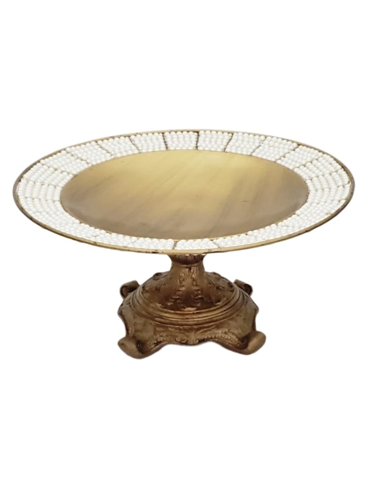 (R$38,00) Bandeja Pérola Pé Resina (A23 /D47cm)